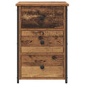 Meet the vidaXL Old Wood Bedside Table, a trendy and handy addition to your bedroom setup. It mixes rustic style with useful features, making it a fab choice for any modern home. The bedside table features a solid build with three classic drawers, each fitted with easy knobs. Its matte finish and unique old wood look add a classy touch to any room.