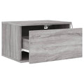 This wall-mounted bedside cabinet with LED lights is the perfect solution for your living space to maximise space and keep the floor areas clean. Durable material: The engineered wood is of exceptional quality with smooth surface and also features strength, stability and resistance to moisture. Made of engineered wood, the wall hung bedside cabinet is easy-to-clean.RGB LED lights: The floating bedside cabinet is equipped with vibrant RGB LED lights. With various customisable menus, you can effortlessly change the colour of the lights and even set them to adjust automatically. These LED lights not only enhance the contemporary look of the cabinet but also add to its trendy appeal.Wall-mounted design: This floating bedside unit can be wall-mounted to add extra storage space. That way, you can maximise your floor space and keep the area clean.Multifunctional cabinet: The bedside wall cabinet serves as the ideal place to put items such as books, collectables, ornaments, and more. It transforms an empty wall into a design feature. Good to know:Screws and plugs for inside the wall are not included. We advise to find and use screws and plugs suitable specifically for your walls. If you're not sure, you can consult with a professional. Please read and follow each step of the instructions.The product has a USB connector that requires a certified 5V USB power source (not included).