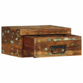 This wall-mounted bedside cabinet is the perfect solution for your living space to maximise space and keep the floor areas clean. Robust and stable: Solid reclaimed wood consists of reused timbers such as teak, mango wood, pinewood, and beech. These materials are recycled from old buildings such as factories, sheds, and boats. Signs of wear and visible grain structure give each piece its own history and a unique look.Wall-mounted design: The floating nightstand can be wall-mounted to add extra storage space. That way, you can maximise your floor space and keep the area clean.Ample storage space: The floating bedside cabinet provides ample storage space for magazines, books, glasses, and other bedtime essentials, keeping them organised and within reach.Sturdy top: The sturdy top of the bedside wall cabinet is perfect for placing table lamps, alarm clocks, books, picture frames, small potted plants, decorations or other essentials.Easy to maintain: Thanks to its smooth surface, the wall nightstand is easy to clean with a damp cloth and requires less maintenance. Good to know:Screws and plugs for inside the wall are not included. We advise to find and use screws and plugs suitable specifically for your walls. If you're not sure, you can consult with a professional. Please read and follow each step of the instructions.