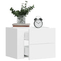 With a stylish design, these wall-mounted bedside cabinets fit easily into your bedroom or living room and add a timeless charm to your interior. Robust and stable frame: The engineered wood is of exceptional quality with a smooth surface and features strength, stability and resistance to moisture.Ample storage space: The wall-mounted bedside cabinet features convenient drawers, helping keep your essentials close at hand.Easy to clean: The wall-mounted bedside cabinet is moisture-resistant and easy to clean to keep it looking new every day.Wall-mounted design: It can be wall-mounted to add extra storage space. That way, you can maximise your floor space and keep the area clean.Stable and sturdy table top: The top of the wall-mounted bedside cabinet is perfect displaying your decorative items, picture frames and potted plants. Good to know:Screws and plugs for inside the wall are not included. We advise to find and use screws and plugs suitable specifically for your walls. If you're not sure, you can consult with a professional. Please read and follow each step of the instructions.