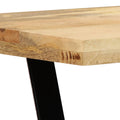 This industrial-style wooden bench will make a captivating addition to your kitchen or dining room. This dining bench is made of solid mango wood, enabling it highly stable and durable. Mango wood is a dense and robust hardwood which has beautiful brown or golden streaks and contours on its surface. Every step of the process is carried out with the greatest care, be it polishing, painting or lacquering. The strong powder-coated iron legs add extra stability to the bench. The hallway bench is easy to assemble. Important note: The colours and grains vary from piece to piece, making each piece unique; delivery is random.