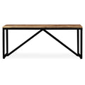 This industrial-style wooden bench exudes a vintage charm and will make a timeless addition to your home. The hall bench is made of solid mango wood which is solid, durable and beautiful. Every step of the process is carried out with the greatest care, be it sanding or lacquering. The beautiful wood grains make every piece of furniture unique and slightly different from the next. The strong steel legs add to the bench's sturdiness. Assembly is easy. Important note: Grains vary from piece to piece, making each of our benches unique. The delivery is random, ensuring the exclusivity and individuality of your product.