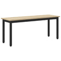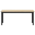 This Modern Dining Bench presents a chic and functional addition for both living and dining rooms, showcasing a seamless blend of simplicity and style within its rectangular form. With its clean lines and minimalist aura, it complements a wide range of interior styles. Designed for indoor use, this bench embodies contemporary elegance, perfect for gatherings or quiet moments alike. Materials: Constructed with a top surface of engineered wood, this bench offers a smooth and sophisticated finish, while being easy to maintain. The combination of materials ensures long-term durability and aesthetic appeal. Included Components: The bench features metal legs that provide sturdy support and stability. The frame's unique square leg design promotes stability while adding to the bench’s modern appeal, making it a stylish centerpiece in any setting. Features /Function /Design: This bench embodies a fusion of simplicity and functionality. Its rectangular shape pairs effortlessly with various dining tables, enhancing the beauty and usability of the meal area. Its durable build withstands daily use while maintaining elegance. Recommended Uses: Ideal for adding seating in both living and dining rooms, this bench becomes a versatile piece. It encourages communal gatherings, offering a practical seating solution during family meals or social events. Care &Maintenance: Simple to care for, thanks to a surface that cleans effectively with a damp cloth. Regular wiping keeps it looking polished, ensuring it retains its charm over time.