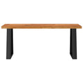 This bench, with solid acacia wood seat and stable U-shaped legs, makes a great addition to your dining room, living room, or hallway. Solid acacia wood: The bench seat is made of solid acacia wood. Solid acacia wood is a beautiful natural material. Acacia wood is a tropical hardwood, which is dense, sturdy, and durable.Live edge: The wood's live edge that follows the natural shape of the tree increases the beauty of the hall bench.Stable frame: The U-shaped powder-coated steel legs add an industrial style to your interior while ensuring the stability of the dining bench.