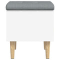 This storage bench designed for both sitting and storing will surely be an eye-catcher in your home decor. Sturdy construction: The engineered wood is of exceptional quality with a smooth surface and features strength, stability and resistance to moisture. The wooden frames also ensure sturdiness and stability for the bench.Ample storage space: The hallway bench has a large storage space for organising clothes, toys, cushions, books, or other personal belongings.Comfortable seating: Experience the ultimate comfort with the integrated thickly padded seat cushion when you sit on it.Stable hinges: The support hinges are robust enough so that the lid can be left open and then you have your hands free to tidy up your items.Versatile use: The bench is perfect to use as a shoe bench in the hallway, or a storage bench in the living room.