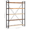 Add a touch of industrial style to your home or office with our 5-tier wooden bookcase. This bookshelf offers an ideal solution for storing and displaying your book collection, magazines, documents, or decorative items like photo frames and collectables. The bookcase features a sturdy powder-coated steel frame which gives it an industrial look. The retro shelves are made of solid reclaimed wood that has been sourced from joists, floors and support beams from old buildings being demolished, and it can consist of different types of wood like pine, teak, beech, oak, cedar, mango wood, acacia, etc. This means the reclaimed wood retains the characteristics of these different types of wood. Reclaimed wood is already aged, weathered and dried, so it doesn't shrink or bend. Every step of the process is carried out with the greatest care, be it polishing, painting or lacquering. The craftsmanship and the eye-catching wood grains make every piece of furniture distinctive and slightly different from the next. This bookcase is easy to assemble. Important note: Colours and wood grain vary from piece to piece, making each of our display shelves unique. The delivery is random, ensuring the exclusivity and individuality of your product.