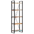 Add a touch of industrial style to your home or office with our 5-tier wooden bookcase. This bookshelf offers an ideal solution for storing and displaying your book collection, magazines, documents, or decorative items like photo frames and collectables. The bookcase features a sturdy powder-coated steel frame which gives it an industrial look. The retro shelves are made of solid reclaimed wood that has been sourced from joists, floors and support beams from old buildings being demolished, and it can consist of different types of wood like pine, teak, beech, oak, cedar, mango wood, acacia, etc. This means the reclaimed wood retains the characteristics of these different types of wood. Reclaimed wood is already aged, weathered and dried, so it doesn't shrink or bend. Every step of the process is carried out with the greatest care, be it polishing, painting or lacquering. The craftsmanship and the eye-catching wood grains make every piece of furniture distinctive and slightly different from the next. This bookcase is easy to assemble. Important note: Colours and wood grain vary from piece to piece, making each of our display shelves unique. The delivery is random, ensuring the exclusivity and individuality of your product.