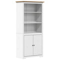 This classic bookcase, featuring a French design, makes a decorative as well as practical addition to your current decor. Solid pine wood: Solid pine wood is a beautiful natural material. Pine wood has a straight grain, and the knots give the material its signature, rustic look. Made of solid pinewood, the book cabinet is sturdy and stable.Ample storage space: The book shelf is designed with 3 open shelves and 2 compartments behind doors, offering ample storage space for keeping your magazines, books, and DVDs.Practical doors with metal handles: Keep your essentials free from dust by hiding them behind the doors of the book rack. The metal handles on the doors make it easy to open and close the doors.Charming French style: Add an inspiring French style to your interior decor! Warning:To prevent it being overturned, this product must be used with the provided wall attachment device.