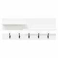 This wall-mounted coat rack with storage brings a modern minimalistic design to your hallway, making it a great solution for organising. It has a mix of hooks and shelves, so you can hang up your outerwear and store your bits all in one compact unit. With its clean lines and sleek look, it fits right in with contemporary decor, making it a versatile addition to any home. This piece is all about utility and style, turning your space into a tidy haven. Whether you're looking to cut down on clutter in a busy family hallway or make the most of a snug apartment entryway, this rack offers a smart solution for storage, becoming a key feature that elevates everyday life. Material Construction: This coat rack is made from quality engineered wood, which is stable and durable. It's a reliable surface for daily use, holding coats, hats, scarves, and other essentials with ease. Its scratch-resistant finish keeps it looking sharp, even in busy spots. Using engineered wood also keeps it eco-friendly while performing well. Practical Components: The rack combines hooks and shelves, which gives you loads of versatility. The hooks are easy to reach, perfect for hanging jackets or bags when you come home. The shelves are great for decorative bits, personal items, or extra storage boxes, enhancing its use without taking up space. This thoughtful combo makes it suitable for both household and personal needs. Stylish Features: With a modern look defined by minimalist style, this coat rack has clean lines and a sleek profile that fits well in modern spaces. It not only serves as storage but also acts as a stylish accent that goes with all types of interiors, from minimalist and industrial to more traditional styles. Its design versatility makes it valuable not just as a storage unit but also as a design piece. Space-Saving Design: As a wall-mounted unit, this coat rack clears up valuable floor space while maxing out vertical storage. This keeps your home pathways clear and makes your rooms feel more open. Perfect for snug areas where you need efficient layout planning, this feature gives you more freedom and makes small spaces feel larger. Easy Maintenance: Keeping this coat rack clean is a breeze—just a quick wipe with a damp cloth will do the trick. Avoid harsh chemicals to keep the finish intact. Follow these simple care tips, and you’ll keep it looking good for ages, making it a practical choice for any home.