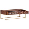 This wooden coffee table is uniquely designed for your living room or any room you want to place it. The couch table is handmade out from solid mango wood, a tropical hardwood with the strength to bear the weight. It also stands the wear and tear of time, making it stable and durable. The included 2 drawers also provide storage space for your items within reach. The sturdy tabletop can be used to put your drinks or snacks. Important note: Colours and grains vary from piece to piece, making each piece unique; the delivery is random.