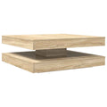 The 360-degree rotating coffee table enhances your living space with its modern aesthetic and practical functionality. Stable and durable material: Engineered wood is a durable and stable material with a smooth surface that is resistant to moisture, warping, and splitting, making it a reliable choice for a variety of projects.360-degree rotatable top: The living room table is designed with a 360-degree rotatable tabletop, allowing you to easily adjust it to suit your needs.Ample storage space: Except for the generous space of table top, the functional design table provides an additional lower layer for storing books, magazines, or other items, keeping your living area organised and clutter-free.Modern appeal: The coffee table conveys harmony and order with its stylish design, creating an eye-catcher in your living room.Easy to maintain: Thanks to its smooth surface, the table is easy to clean with a damp cloth and requires less maintenance.