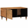 Add a touch of elegance to your living room with this stylish coffee table. Solid mango wood: Solid mango wood is a strong, tropical hardwood that makes sturdy furniture. Its beautiful wood grains make every piece of furniture slightly different from the next. Made of solid mango wood, the side table is durable and stable.Ample storage space: This sofa table offers ample storage space to keep your essentials well organised and within reach.Sturdy tabletop: The sturdy tabletop of the living room table is perfect for placing your drinks, food and other decorative items.Practical door: Keep your essentials free from dust by hiding them behind the door of this couch table.Iron legs: The iron legs add a calm style to your interior while ensuring stability. Good to know:Each item is unique with variations in colours and grains. The delivery is random, ensuring the exclusivity and individuality of your product.