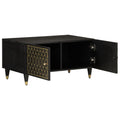 Add a touch of elegance to your living room with this stylish coffee table. Solid mango wood: Solid mango wood is a strong, tropical hardwood that makes sturdy furniture. Its beautiful wood grains make every piece of furniture slightly different from the next. Made of solid mango wood, the side table is durable and stable.Ample storage space: This sofa table offers ample storage space to keep your essentials well organised and within reach.Sturdy tabletop: The sturdy tabletop of the living room table is perfect for placing your drinks, food and other decorative items.Practical door: Keep your essentials free from dust by hiding them behind the door of this couch table.Iron legs: The iron legs add a calm style to your interior while ensuring stability. Good to know:Each item is unique with variations in colours and grains. The delivery is random, ensuring the exclusivity and individuality of your product.