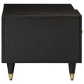 - Material: Solid mango wood with black finish, engineered wood, iron