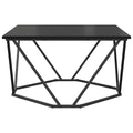 This coffee table showcases modern design, blending functionality with good looks. Made from metal and black oak veneer, it makes for a stunning centrepiece in any living room, fitting in nicely with various decor styles while providing practical use. Stylish Modern Shape: The rectangular design gives you loads of space for drinks and decor, making it the perfect all-rounder table. Sturdy Metal Base: The geometric metal base boosts stability while adding a splash of modern style. Sleek and Minimalist Finish: The matte finish adds a classy feel, making it a chic addition to your home. Easy Care Instructions: Just wipe it down with a dry cloth to keep it looking fab, and use coasters to avoid water damage. Room Friendly Dimensions: Measuring 80cm in length and width, this coffee table is perfect for medium spaces, fitting up to 4 people comfortably.
