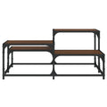 Decorate your living room with this stylish coffee table, it easily blends with furniture in any style at your house. Durable material: The engineered wood is of exceptional quality with smooth surface and also features strength, stability and resistance to moisture. Made of engineered wood, the sofa table is easy to clean.Displaying function: This square coffee table consists of different height tops, which ensures that each leaf can contain its own decoration.Sturdy top: The sturdy tabletop of the couch table is ideal for placing your drinks or any other necessities you need close at hand.Metal frame: The metal frame adds an industrial style to your interior while ensuring durability and stability.Adjustable feet: The adjustable feet with plastic pads keep the centre table balanced on uneven ground and increase stability.