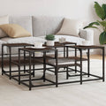 Decorate your living room with this stylish coffee table, it easily blends with furniture in any style at your house. Durable material: The engineered wood is of exceptional quality with smooth surface and also features strength, stability and resistance to moisture. Made of engineered wood, the side table is easy to clean.Sturdy tabletop of 2 heights: This sofa table is designed with 2 tabletop heights for a layered look, offering ample surface space for books, decorative items, and other daily essentials.Adjustable feet: The adjustable feet with plastic pads keep the living room table balanced on uneven ground and increase stability.Metal frame: The metal frame adds an industrial style to your interior while ensuring durability and stability.