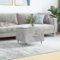Add a touch of elegance to your living room with this stylish coffee table. Durable material: The engineered wood is of exceptional quality with smooth surface and also features strength, stability and resistance to moisture.Ample storage space: The side table has a drawer, offering ample storage space to keep your essentials well-organised and within reach.Sturdy tabletop: The sturdy tabletop of the sofa table is perfect for placing your drinks, food and other decorative items.Iron legs: The iron legs add a calm style to your interior while ensuring stability.