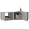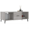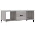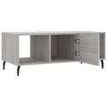 Add a touch of elegance to your living room with this stylish coffee table. Durable material: The engineered wood is of exceptional quality with smooth surface and also features strength, stability and resistance to moisture.Ample storage space: This side table has 3 compartments, offering ample storage space to keep your essentials well-organised and within reach.Sturdy tabletop: The sturdy tabletop of the sofa table is perfect for placing your drinks, food and other decorative items.Practical door: Keep your space clutter-free by hiding small essentials behind the door of the living room table.Iron legs: The iron legs add a calm style to your interior while ensuring stability.