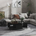 This stylish coffee table featuring an industrial charm is a practical addition to your current living space. This couch table can keep your living space free of clutter thanks to its storage Shelf and a compartment inside the door which are perfect for placing books, magazines, or small essentials you'd like to keep within reach. The metal legs add extra stability. The sturdy tabletop is also ideal for placing your drinks, food and other decorative items. Additionally, the living room table is easy to clean with a damp cloth.