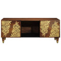 This modern coffee table is a central piece for your living room with its sleek and minimalist vibe. It's crafted for both style and practicality, striking a spot-on balance between modern elegance and day-to-day use. This table is a fab addition to your home, catering to all your daily needs. Matte Finish: The coffee table’s matte finish gives it a subtle elegance, cutting down on glare in bright areas. This finish fits well with loads of different styles, adding a nice texture and feel to your home. Practical Shelving: With its shelves, this table offers a decent spot for stashing magazines, books, or remotes. Each shelf is designed to last and be easy to use, keeping your lounge neat and your stuff within reach. Solid Mango Wood Frame: The sturdy frame made from solid mango wood shows off its strong build. This material is incredibly durable, making sure it holds up well while looking fab for years. Functional Design: The hand-painted front of the coffee table adds a special touch of artistry, mixing function with style. It’s not just a piece of furniture; it’s a real conversation starter! Effortless Upkeep: Keeping the coffee table looking tip-top is easy. Just a quick wipe with a dry cloth will keep it dust-free and shining. This simple care routine means your table will stay a favourite feature in your home for ages.