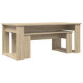 This Modern Coffee Table Set adds a sophisticated yet functional edge to any living room. Designed for style and utility, this coffee table set is perfect for placing decor, drinks, and reading materials. Its rectangular shape creates a balanced visual appeal that complements a variety of furnishings and settings, providing both utility and elegance. Engineered Wood Material: Crafted from engineered wood, this coffee table set is designed for durability while offering a sleek, modern look. The material is chosen for its strength and ability to fit seamlessly into any interior design, ensuring long-lasting use and minimal maintenance. Convenient Assembly: With intuitive design instructions, assembling this table set is straightforward. The package contains all necessary parts, and assembly requires two people with a screwdriver, emphasizing simplicity and ease to provide a quick setup without unnecessary complexity. Versatile Style: The contemporary design of this coffee table set ensures it complements any living space. Its understated elegance allows it to function as both a practical surface for everyday items and a showcase space for decorative pieces, offering adaptability and timeless appeal. Indoor Use Only: This table set is intended for indoor use, making it an excellent choice for living rooms, lounges, or other interior spaces, enhancing indoor environments with its functional style and presence while maintaining its material integrity. Care Instructions: To preserve the table’s pristine condition, avoid using harsh chemicals or abrasive materials during cleaning. Regular dusting and gentle wiping keep the surface looking new, ensuring longevity in appearances and function.