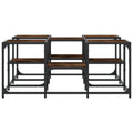 Decorate your living room with this stylish coffee table, it easily blends with furniture in any style at your house. Durable material: The engineered wood is of exceptional quality with smooth surface and also features strength, stability and resistance to moisture. Made of engineered wood, the side table is easy to clean.Sturdy tabletop of 2 heights: This sofa table is designed with 2 tabletop heights for a layered look, offering ample surface space for books, decorative items, and other daily essentials.Adjustable feet: The adjustable feet with plastic pads keep the living room table balanced on uneven ground and increase stability.Metal frame: The metal frame adds an industrial style to your interior while ensuring durability and stability.