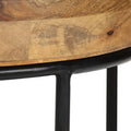 This industrial-style coffee table exudes a vintage charm and will make a striking addition to your home. The coffee table can also be used as a side table or end table. The retro coffee table is handmade of solid mango wood which is stable, durable, and beautiful. Every step of the process is carried out with the greatest care, be it polishing, painting or lacquering. The craftsmanship and beautiful wood grains make every piece of furniture unique and slightly different from the next. Thanks to the strong powder-coated steel base, the coffee table is very sturdy and durable. The item is already assembled; no assembly is required. Important note: The colours vary from piece to piece, making each of our coffee tables unique. The delivery is random, ensuring the exclusivity and individuality of your product.