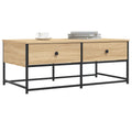 Add a touch of elegance to your living room with this stylish coffee table. Sturdy material: The engineered wood is of exceptional quality with smooth surface and also features strength, stability and resistance to moisture.Ample storage space: The side table offers ample storage space to keep your essentials well-organised and within reach.Sturdy tabletop: The sturdy tabletop of the sofa table is perfect for placing your drinks, food, and other decorative items.Adjustable legs: Four adjustable feet with plastic pads keep the living room table balanced on uneven ground and increase stability.