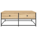 Add a touch of elegance to your living room with this stylish coffee table. Durable material: The side table is made of engineered wood. The engineered wood is of exceptional quality with a smooth surface and also features strength, stability, and resistance to moisture.Ample storage space: This sofa table features 2 drawers, offering ample storage space to keep your essentials well organised and within reach.Stable tabletop: The stable tabletop of the living room table is perfect for placing your drinks, food and other decorative items.Sturdy frame: The metal frame of this couch table ensures sturdiness and stability.