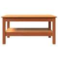 Add a touch of elegance to your home with this stylish wooden coffee table. Solid pine wood: Solid pine wood is a beautiful natural material. Pine wood has a straight grain, and the knots give the material its signature, rustic look.Stable frame: The wooden frame ensures sturdiness and stability.Additional storage space: The side table has an additional storage shelf. So, you can keep your magazines, books, remote controls and more.Sturdy tabletop: The sturdy tabletop is perfect for placing your drinks, food and other decorative items.