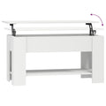 An essential part of every living space: coffee tables! Bring this versatile coffee table to your home right now! Lift-top design: The tabletop of this sofa table can be smoothly lifted to a comfortable height, converting it to a spot where you can work or dine.Storage master: The hidden compartment beneath the rising tabletop makes it easy to keep things organised.Easy-to-clean material: The engineered wood is of exceptional quality with smooth surface and also features strength, stability and resistance to moisture. Made of engineered wood, the centre table is easy to clean.Versatile table: Featuring a unique design, this modern coffee table can serve as a temporary dining table and even a computer desk, which makes it absolutely an excellent investment and addition to any limited space.