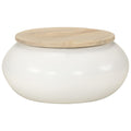 - Material: Solid mango wood with a natural finish, iron with a white finish