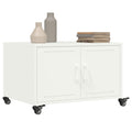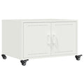 This sturdy coffee table is designed to be a focal point of your room with a trendy yet practical design. Stable material: The coffee table's frame is made of cold-rolled steel. Cold-rolled steel is a kind of low-carbon steel produced by a "cold rolling" method and processed at near normal room temperatures. Cold-rolled steel has a smoother surface, greater strength, and higher precision.Ample storage space: This cabinet offers handy storage space for keeping your magazines, books, remote controls and other small items well-organised and within reach.Easy to maintain: The table is easy to clean with a damp cloth and requires less maintenance.Easy to move: This sofa table has 4 wheels, making it move flexibly and park stably at any time.Practical handle: The living room table comes with 2 handles that make it easy to open and close the cabinet while also adding to extra beauty.