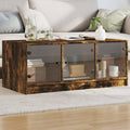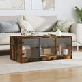 This coffee table adds a modern charm as well as ample storage space to your current home decor! Durable material: The engineered wood is of exceptional quality with smooth surface and also features strength, stability and resistance to moisture.Ample storage space: The side table provides ample storage space for books, multimedia appliances, and other items.Displaying function: The sturdy tabletop of the sofa table is ideal for displaying decorative objects, photo frames, or potted plants.Practical glass doors: Keep your space clutter-free by hiding small essentials behind the doors of the tea table. In addition, the glass doors allow you to see inside the living room table to display items beautifully.