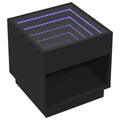 The unique coffee table with an LED infinity mirror is suitable for different places. Stable and durable material: Engineered wood is a durable and stable material with a smooth surface that is resistant to moisture, warping, and splitting, making it a reliable choice for a variety of projects.RGB LED Lights for a pleasant ambience: This table features LED lights that can be easily adjusted to create a personalised light show. You can customise the modes, colours, and brightness to enhance the ambience of your interior space.Sturdy tabletop: The sturdy tabletop of the living room table is perfect for placing your drinks, food and other decorative items.Multiple applications: This coffee table serves multiple purposes. It can function as a side table, end table, or couch table in your living room or bedroom, catering to your specific needs. Good to know:The product has a USB connector that requires a certified 5V USB power source (not included).