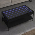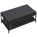 The unique coffee table with an LED infinity mirror is suitable for different places. Stable and durable material: Engineered wood is a durable and stable material with a smooth surface that is resistant to moisture, warping, and splitting, making it a reliable choice for a variety of projects.RGB LED Lights for a pleasant ambience: This table features LED lights that can be easily adjusted to create a personalised light show. You can customise the modes, colours, and brightness to enhance the ambience of your interior space.Sturdy tabletop: The sturdy tabletop of the living room table is perfect for placing your drinks, food and other decorative items.Multiple applications: This coffee table serves multiple purposes. It can function as a side table, end table, or couch table in your living room or bedroom, catering to your specific needs.Sturdy structure: The metal feet add a calm style to your interior while ensuring stability. Good to know:The product has a USB connector that requires a certified 5V USB power source (not included).