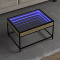 The unique coffee table with an LED infinity mirror is suitable for different places. Stable and durable material: Engineered wood is a durable and stable material with a smooth surface that is resistant to moisture, warping, and splitting, making it a reliable choice for a variety of projects.RGB LED Lights for a pleasant ambience: This table features LED lights that can be easily adjusted to create a personalised light show. You can customise the modes, colours, and brightness to enhance the ambience of your interior space.Sturdy tabletop: The sturdy tabletop of the living room table is perfect for placing your drinks, food and other decorative items.Multiple applications: This coffee table serves multiple purposes. It can function as a side table, end table, or couch table in your living room or bedroom, catering to your specific needs. Good to know:The product has a USB connector that requires a certified 5V USB power source (not included).