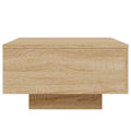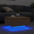 Decorate your living room with this modern coffee table with LED lights, it easily blends with furniture in any style at your house. Durable material: The engineered wood is of exceptional quality with a smooth surface and features strength, stability and resistance to moisture.Sturdy tabletop: The sturdy tabletop of this side table provides a secure surface, on which you can place drinks, vases, fruit bowls or ornaments.Versatile design: This sofa table can meet your different requirements for it can be used as a side table, tea table or telephone table.Adjustable LED lights: The couch table is equipped with vibrant RGB LED lights. With various customisable menus, you can effortlessly change the colour of the lights and even set them to adjust automatically. These LED lights not only enhance the contemporary look of the centre table but also add to its trendy appeal. Good to know:The product has a USB connector that requires a certified 5V USB power source (not included).