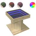 The unique coffee table with an LED infinity mirror is suitable for different places. It's a must-have table in your house. Stable and durable material: Engineered wood is a durable and stable material with a smooth surface that is resistant to moisture, warping, and splitting, making it a reliable choice for a variety of projects.RGB LED lights for a pleasant ambience: This coffee table features LED lights that can be easily adjusted to create a personalised light show, enhancing your interior space's ambience.Sturdy tabletop: The sturdy tabletop of the living room table is perfect for placing your drinks, food and other decorative items.Multiple applications: This coffee table serves multiple purposes. It can function as a side table, end table, or couch table in your living room or bedroom, catering to your specific needs. Good to know:The product has a USB connector that requires a certified 5V USB power source (not included).
