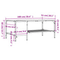 Decorate your living room with this stylish coffee table, it easily blends with furniture in any style at your house. Durable material: The engineered wood is of exceptional quality with smooth surface and also features strength, stability and resistance to moisture. Made of engineered wood, the sofa table is easy to clean.Ample storage space: With a rack on the side and a shelf under the table top, the side table offers ample storage space for keeping your magazines, books, decorative items, and other daily essentials well-organised and within reach.Sturdy top: The sturdy tabletop of the couch table is ideal for placing your drinks or any other necessities you need close at hand.Metal frame: The metal frame adds an industrial style to your interior while ensuring durability and stability.Adjustable feet: The adjustable feet with plastic pads keep the centre table balanced on uneven ground and increase stability.