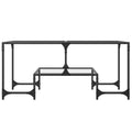 Add a touch of elegance to your living room with this stylish coffee table! Glass top: The top of the side table provides a visible and ample surface to place snacks, drinks, vases, fruit bowls, or other decorative items.Durable material: The engineered wood is of exceptional quality with a smooth surface and features strength, stability and resistance to moisture.Sturdy and stable frame: The stainless steel frame of the living room table ensures sturdiness and stability.Easy maintenance: This coffee table with stain-resistant surface is easy to wipe clean and you can effortlessly keep the table looking its best.Simple design: This sofa table has a simple and modern design that complements any room decor.