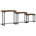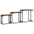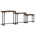 These 3 nesting coffee tables are the perfect alternative for small flats or any area with limited space. Its industrial design makes this coffee table set a chic addition to your living room, bedroom or office. Durable material: The engineered wood is of exceptional quality with smooth surface and also features strength, stability and resistance to moisture. Made of engineered wood, these nesting tables are easy to clean.Nesting design: The nesting coffee table set has different sizes to meet your different requirements. The smaller tables can nest inside the larger coffee table if you need more room. And you can arrange them separately for maximum tabletop space.Sturdy top: The sturdy tabletop of the nesting stand is ideal for placing your drinks or any other necessities you need close at hand.Versatile function: The nesting side tables are versatile! Any one of them can be used as a nightstand in the bedroom, a side table or a couch table in the living room and office.Metal frame: The metal frame adds an industrial style to your interior while ensuring durability and stability.