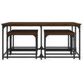 The 5 nesting coffee tables are the perfect alternative for small flats or any area with limited space. Its industrial design makes this coffee table set a chic addition to your living room, bedroom or office. Durable material: The nesting tables are made of engineered wood which is of exceptional quality with a smooth surface and features strength, stability and resistance to moisture.Nesting design: The nest of tables have different sizes to meet your different requirements. The smaller tables can nest inside the larger coffee table if you need more room. And you can arrange them separately for maximum tabletop space.Versatile function: The nesting side tables are versatile! Any one of them can be used as a nightstand in the bedroom, a side table or a couch table in the living room and office.Sturdy top: The sturdy tabletop of the nesting stands is ideal for placing your drinks or any other necessities you need close at hand.