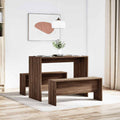 Create a warm and inviting place to start the day or enjoy a great meal with this dining table and bench set! Stable and durable material: Engineered wood is a durable and stable material with a smooth surface that is resistant to moisture, warping, and splitting, making it a reliable choice for a variety of projects.Sturdy tabletop: This dining table features a robust tabletop, making it ideal for serving meals, snacks, drinks, and showcasing your favourite decorations.Generous seating: Thanks to the generous bench seating, this dining set is perfect for gathering family and friends for a delightful feast.Easy maintenance: Thanks to its smooth surface, the dining set is easy to clean with a damp cloth and requires less maintenance.