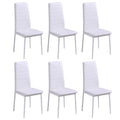 This dining table set, consisting of 7 pieces, has a sleek, modern design and is perfect for those who are looking to add a touch of style to their interior. The table top is made of high-strength tempered glass which is easy to clean. Each chair is upholstered with high-quality artificial leather. The supple, padded seat is very comfortable. Delivery includes 1 table and 6 chairs.