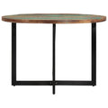 Featuring a chic design, this wooden dining table will make a distinctive addition to your kitchen or dining room. Premium material: Solid reclaimed wood consists of reused timbers such as teak, mango wood, pinewood, and beech. These materials are recycled from old buildings such as factories, sheds, and boats. This makes it a very environmentally friendly option in furniture manufacturing. As every piece is handmade and unique colours will vary for each product. You might see some blue, green, and sometimes, orange, red or pink.Sturdy tabletop: The sturdy tabletop is perfect for placing your drinks, vases, and other decorative items.Solid frame: The strong powder-coated iron frame ensures the sturdiness and stability of the dining room table.Note: The grains vary from piece to piece, making each piece unique. The delivery is random, ensuring the exclusivity and individuality of your product.