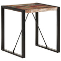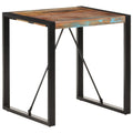 The industrial-style wooden dining table is designed to be a captivating addition to your kitchen or dining room. The antique bistro table is made of solid reclaimed wood that has been sourced from joists, floors, and support beams from old buildings being demolished, and can consist of different types of wood like pine, teak, beech, etc. This means the reclaimed wood retains the characteristics of these different types of wood. Reclaimed wood is already aged, weathered, and dried, so it doesn't shrink or bend. This table with the elegant wood grains makes every piece of furniture extraordinary and slightly different from each other. Additionally, the strong powder-coated steel legs add to the table's sturdiness. Important note: The colours and wood grains vary from piece to piece, making each piece unique; the delivery is random as well.