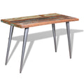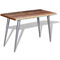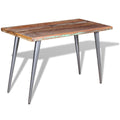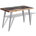 This vintage-style wooden dining table will make a unique addition to your kitchen or dining room. Its solid wood construction makes it stable and sturdy. This table is made of solid reclaimed wood, which means that every piece of furniture is unique and slightly different from the next. Furniture made from reclaimed wood has the characteristics of different woods like teak, mango wood and acacia. Reclaimed wood is solid, stable, durable, and beautiful. Signs of wear and visible grain structure make every piece of furniture unique and slightly different from the next. The tabletop is handmade, and the craftsmanship adds to its spectacular retro style. Every step of the process is carried out with the greatest care, be it polishing, painting or lacquering. The dining table can be easily moved around to suit any setting. Important note: Colours vary from piece to piece, making each of our dining tables unique. The delivery is random, ensuring the exclusivity and individuality of your product.