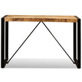 This striking wooden dining table in the industrial style will make a distinctive addition to your kitchen or dining room. This dinner table is made of solid rough mango wood which is stable, durable and beautiful, and the craftsmanship adds to the table's spectacular retro style. The steel legs complete the industrial look. Every step of the process is carried out with the greatest care, be it polishing or lacquering. Assembly is easy. Important note: The rough mango wood shows natural grains, making each of our dining tables unique and slightly different from the next. The delivery is random, ensuring the exclusivity and individuality of your product.